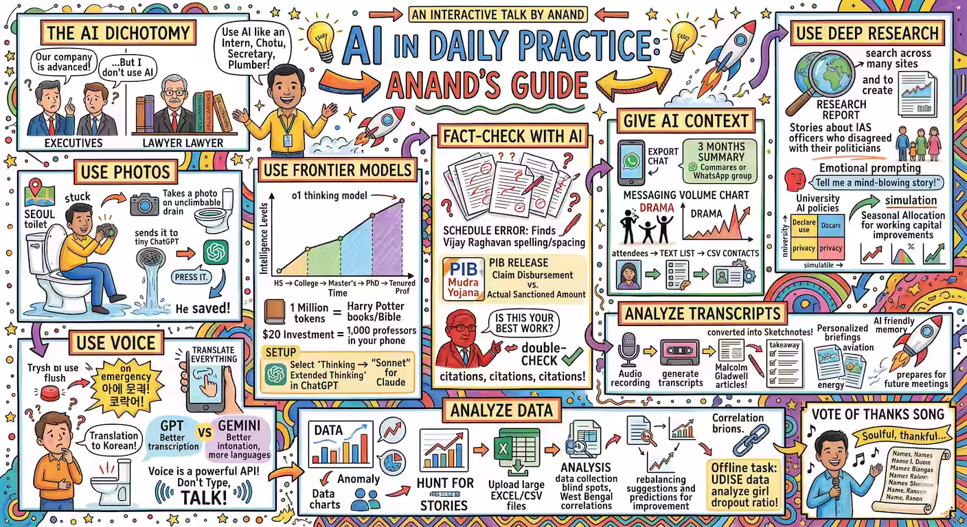 He begins with a confession. Every senior executive he talks to tells him: "We have the most advanced AI in our organisation. We are at the forefront of policy." Then Anand asks what they personally use. The answer, almost invariably: "No, I don't use AI."