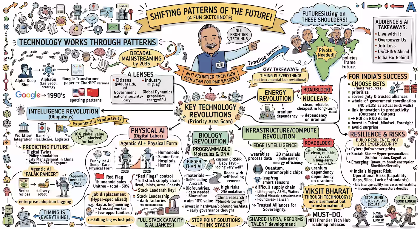 Technology pathways are not shaped by isolated breakthroughs, but by the patterns that connect them. Those who learn to recognize these patterns early can better anticipate what comes next. — Slide 3, NITI Frontier Tech Scan